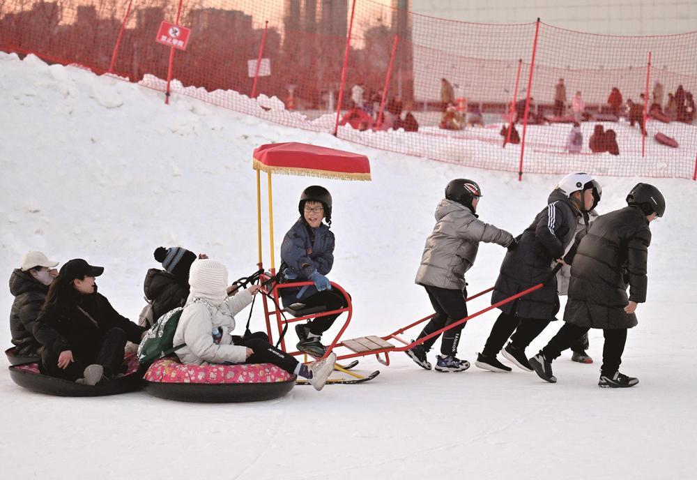 弯道山滑雪场内,孩子们尽情享受冰雪带来的快乐。