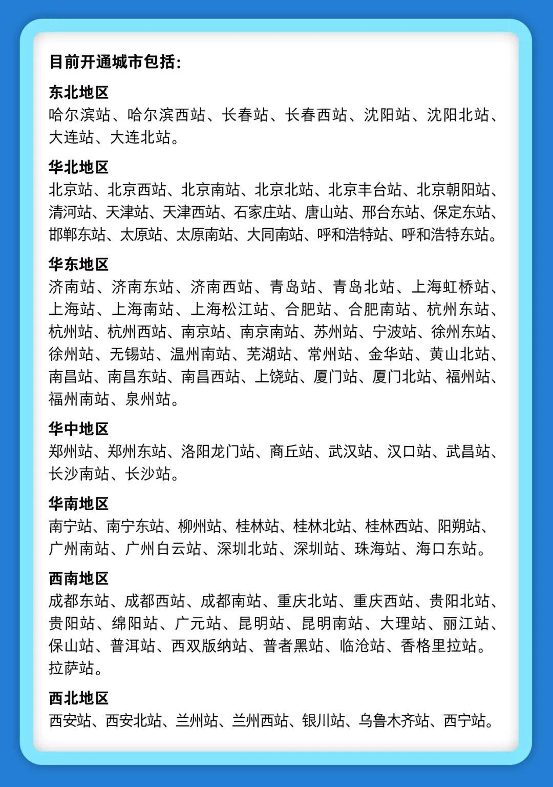 中铁快运自1月15日起扩大“轻装行”服务试点范围,新增哈尔滨、长春、天津、石家庄、西安、南昌、南宁、乌鲁木齐、拉萨等城市的92个车站,总数达到111个,基本覆盖全国省会城市、直辖市、计划单列市,减轻旅客携带大件行李负担,让乘坐火车出行更轻松。其中河北境内除石家庄站外,还包括唐山站、邢台东站、保定东站、邯郸东站。