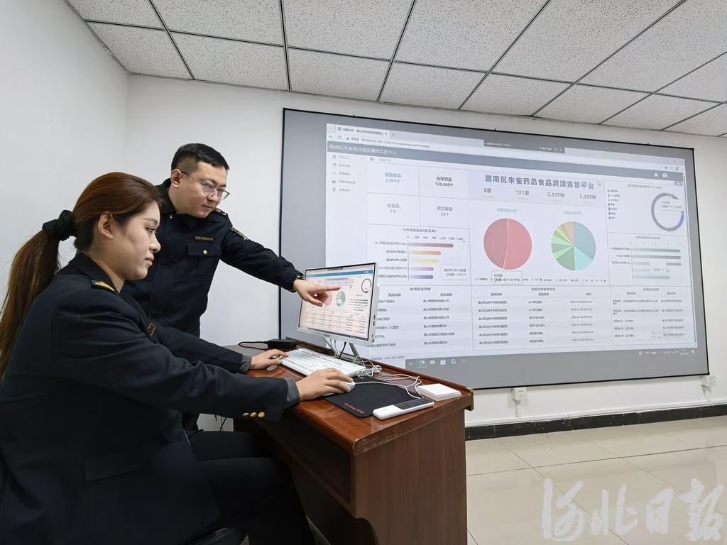 1月20日,唐山市路南区市场监管局工作人员查看智慧溯源监管系统上各药店临期药品预警信息。河北日报记者 王育民 摄