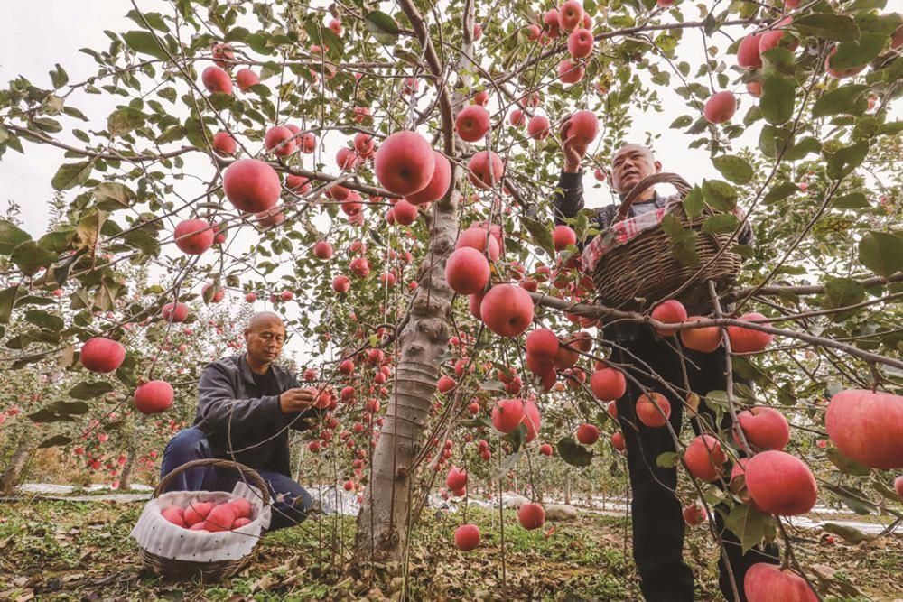 图为果农采摘苹果(资料图)。东陵满族乡 供图