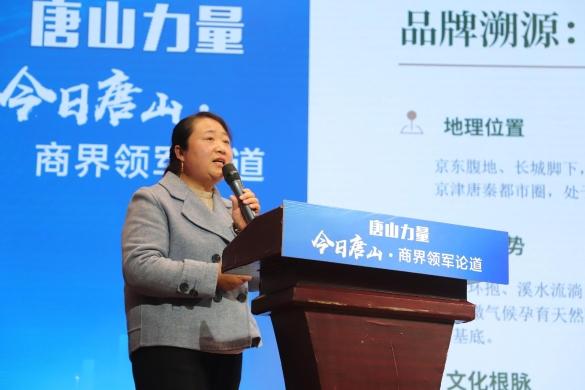 迁安市贯头山酒业有限公司党支部书记兼省级非遗传承人王艳秋正在做企业经营经验分享。 王悦 摄