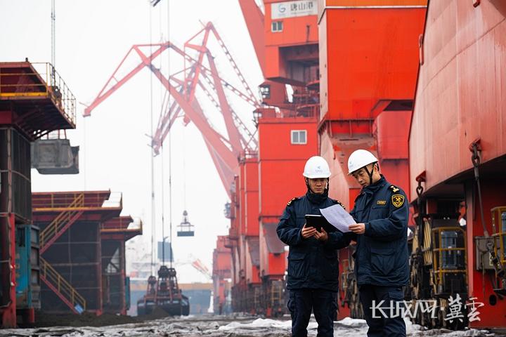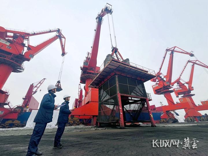 京唐港海关关员监督进口铜精矿倒运过程。
