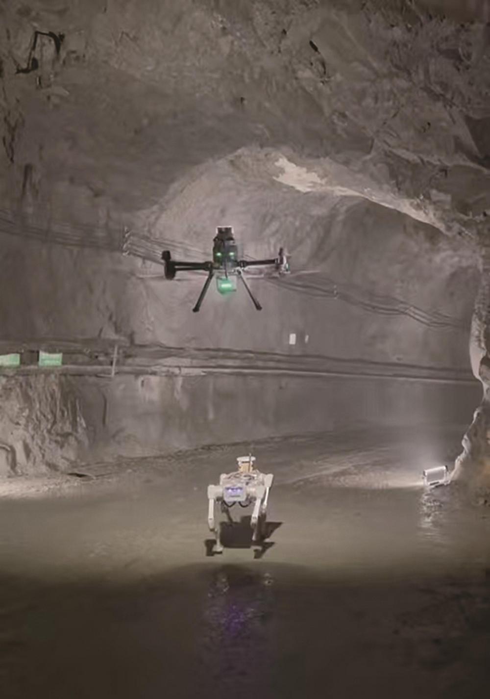 图为机器狗和无人机在井下作业。董奕、赵新 摄