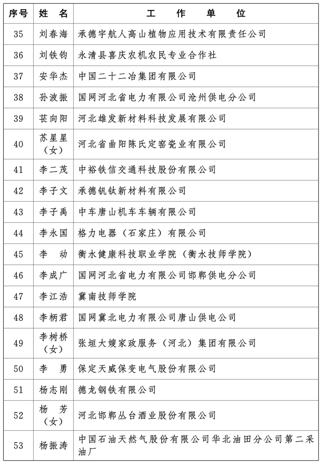2025年度河北省燕赵黄金台聚才计划拔尖人才(技能平台)名单