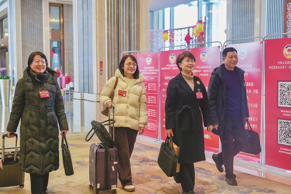 2月4日,出席政协唐山市第十三届委员会第六次会议的委员们陆续抵达会议驻地报到。 记者 徐慧 张北男 摄