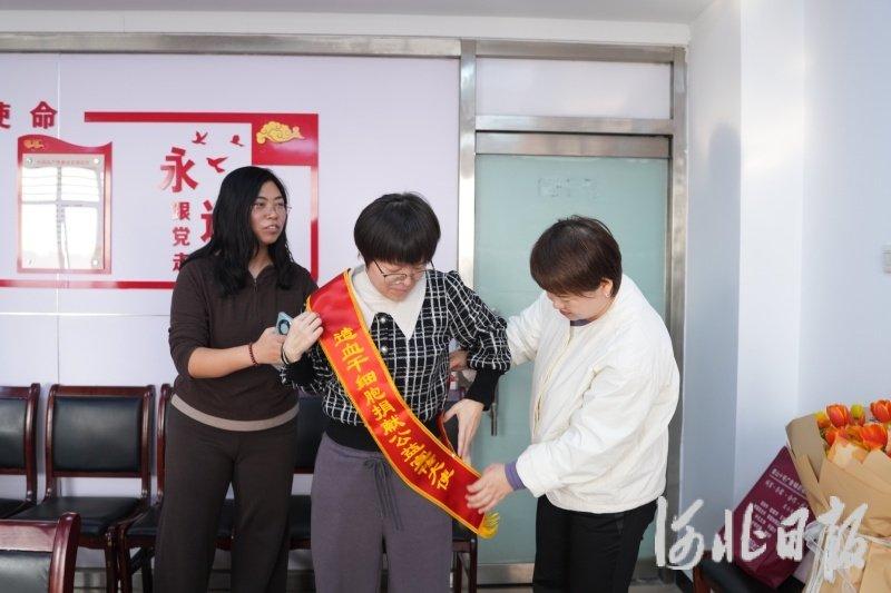 河北日报客户端消息(彭月娟、张泽慧、李小娜)2月3日,在石家庄市人民医院完成造血干细胞志愿捐献的石茗华,返回家乡迁安后第一时间投入工作。迁安市红十字会工作人员前往她所在单位进行慰问,并聘请她为“迁安市造血干细胞捐献公益宣传大使”。