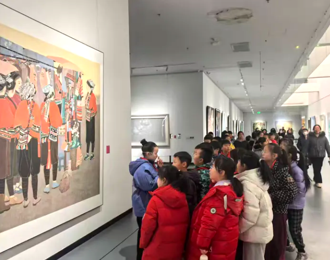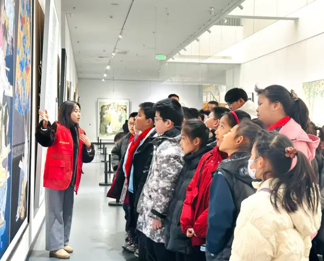 四二中队以“艺启寒假,美遇唐美”为主题,组织队员走进唐山美术馆,开启了一场沉浸式艺术研学之旅。本次活动同步探访第十二届中国工笔画作品展(河北巡展)、刘亚安油画艺术作品展与青少年美术作品展三大展区,让同学们在传统与现代、专业与童趣的艺术碰撞中收获成长。