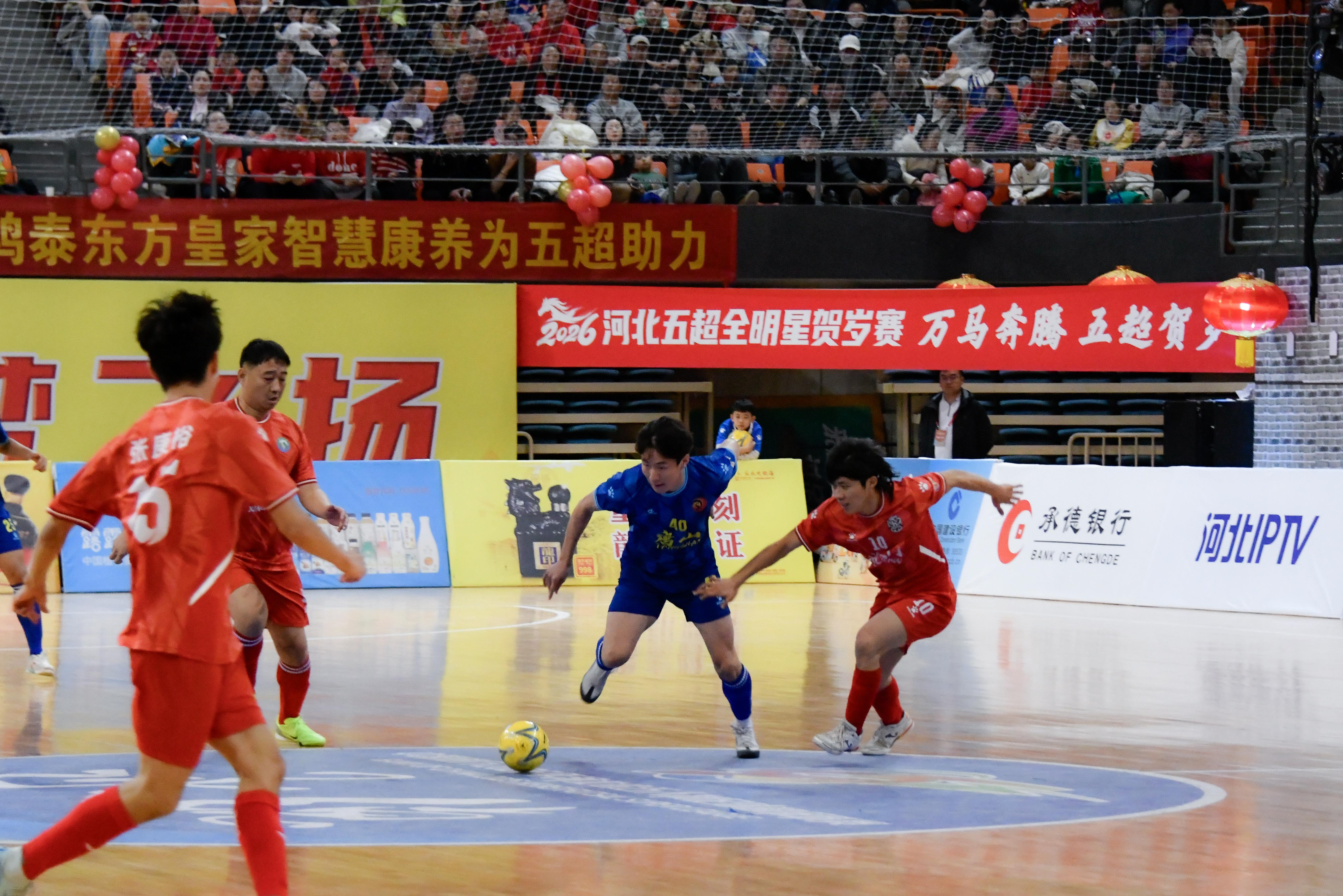 环渤海新闻网消息(张顺智 王欢)2月10日晚,“河北五超”全明星贺岁赛在承德奥体中心开赛。本次赛事汇聚全省各地市足球精英与球迷朋友,以足球为纽带、以文化为底色,展现了燕赵大地风貌,为新春佳节献上一场体育与文化交融的盛宴。