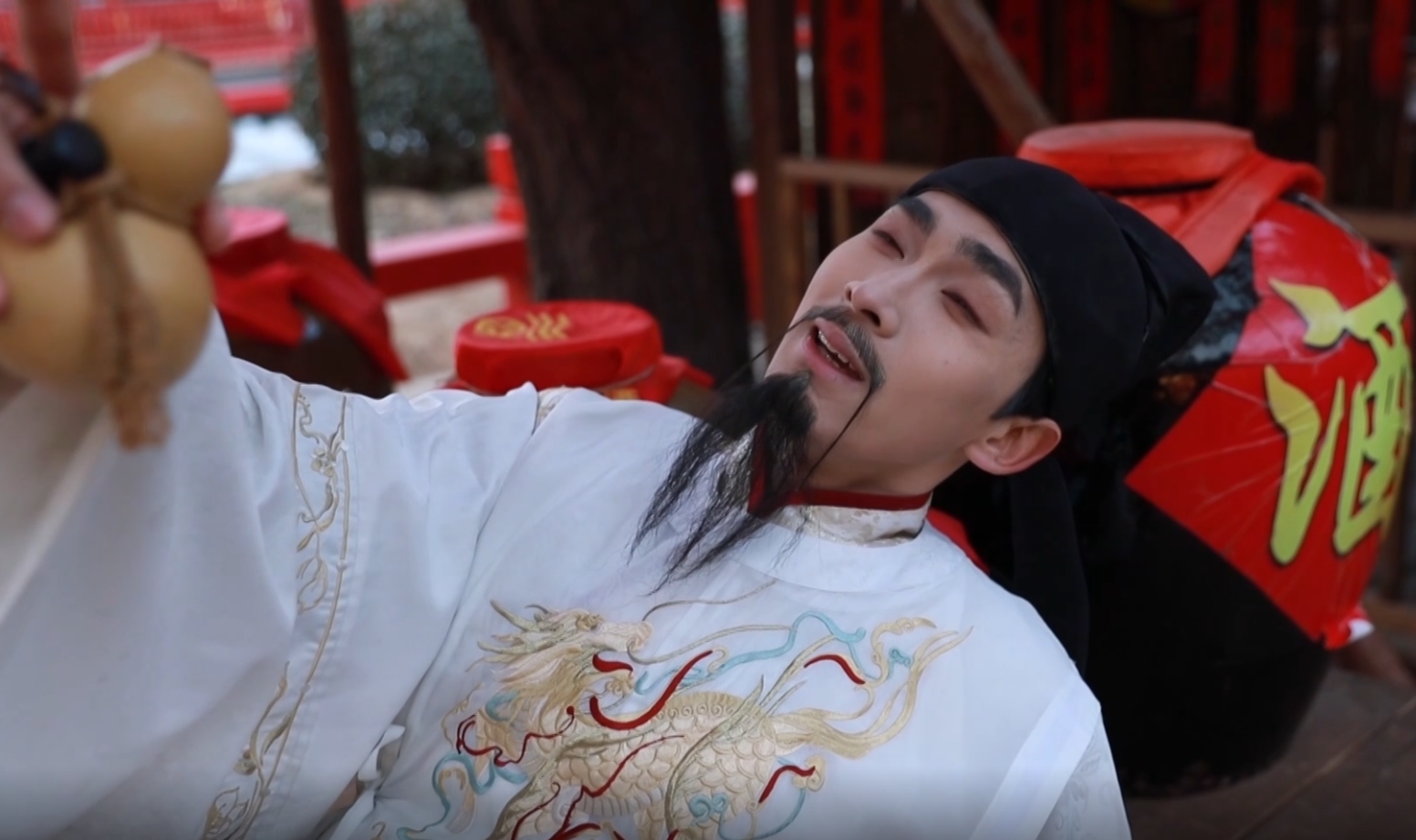 (干这个工作多长时间了?)三个月,我是刚毕业的大学生,(在这三个月过程中有没有比较有意思的事情发生?)我记得第一次我演李白的时候,有一个游客突然过来给我来了一句,“赵客缦胡缨”,我当时脑子转了半天,(答不上来)CPU都烧了。他说这李白的诗你怎么能不会呢?确实很尴尬,脸通红当时。