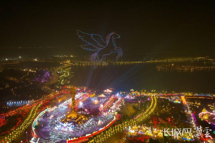 航拍2026唐山南湖春节灯会。