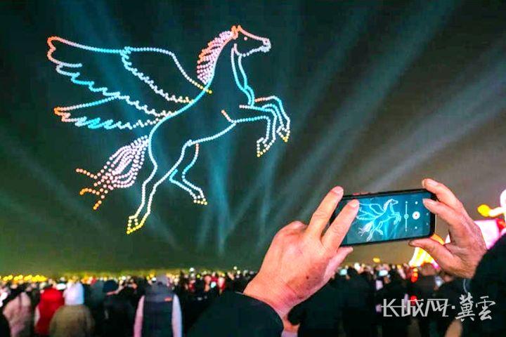 无人机秀惊艳绽放,游客纷纷驻足观赏。