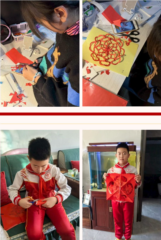 二年级(1)中队积极参与社区志愿服务,队员们化身“社区小卫士”,主动清扫楼道、擦拭公共设施,用实际行动践行“社区是我家”的责任。同时,队员们体验剪纸、中国结、果壳制画等非遗手工,在动手实践中感受传统文化魅力。