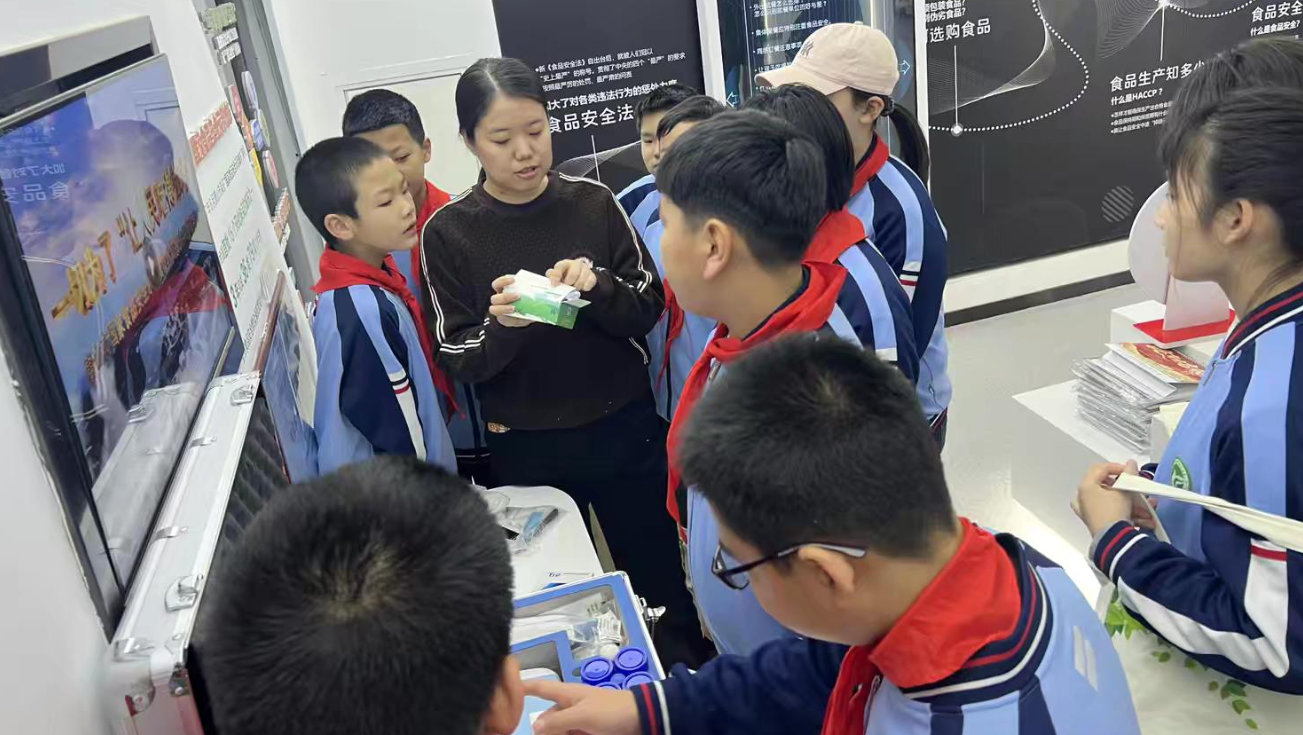 六(3)中队前往唐山市市场监督管理科普教育基地,开展社会实践研学活动。队员们在讲解员的带领下,依次参观食品安全、知识产权、安全用药等展区,通过实物对比、互动体验、科普游戏等形式,学习辨别“三无”食品、区分药品标识、了解专利保护等实用知识,在沉浸式体验中提升安全意识与科学素养。此次活动将理论与实践相结合,让同学们在“做中学、学中思”,真正实现知行合一。