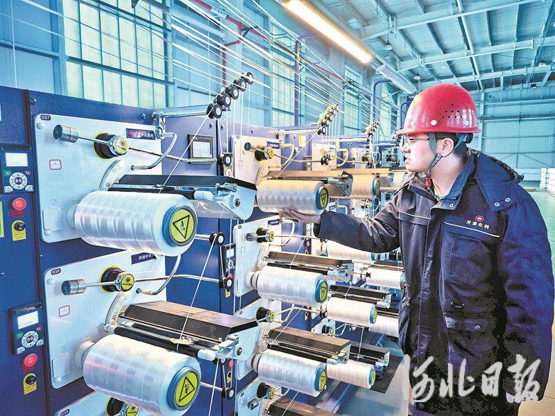 开滦化工新材料中试及产业化示范基地工作人员检查高强度聚甲醛纤维产品质量。