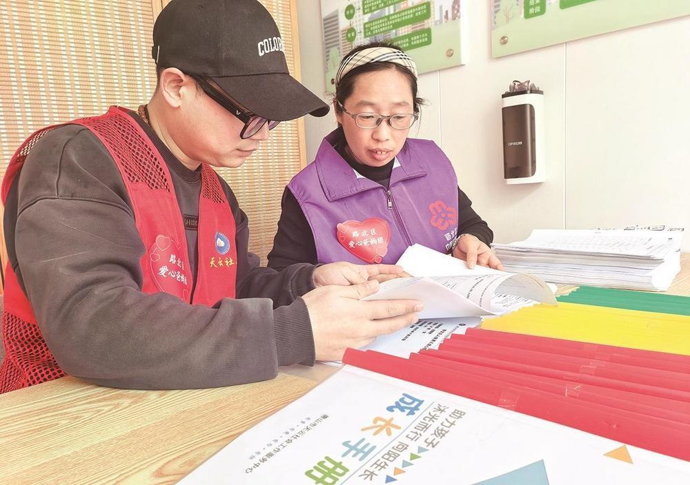 路北区天云社工的“爱心爸妈”在整理困境儿童成长档案。 刘洪超 摄