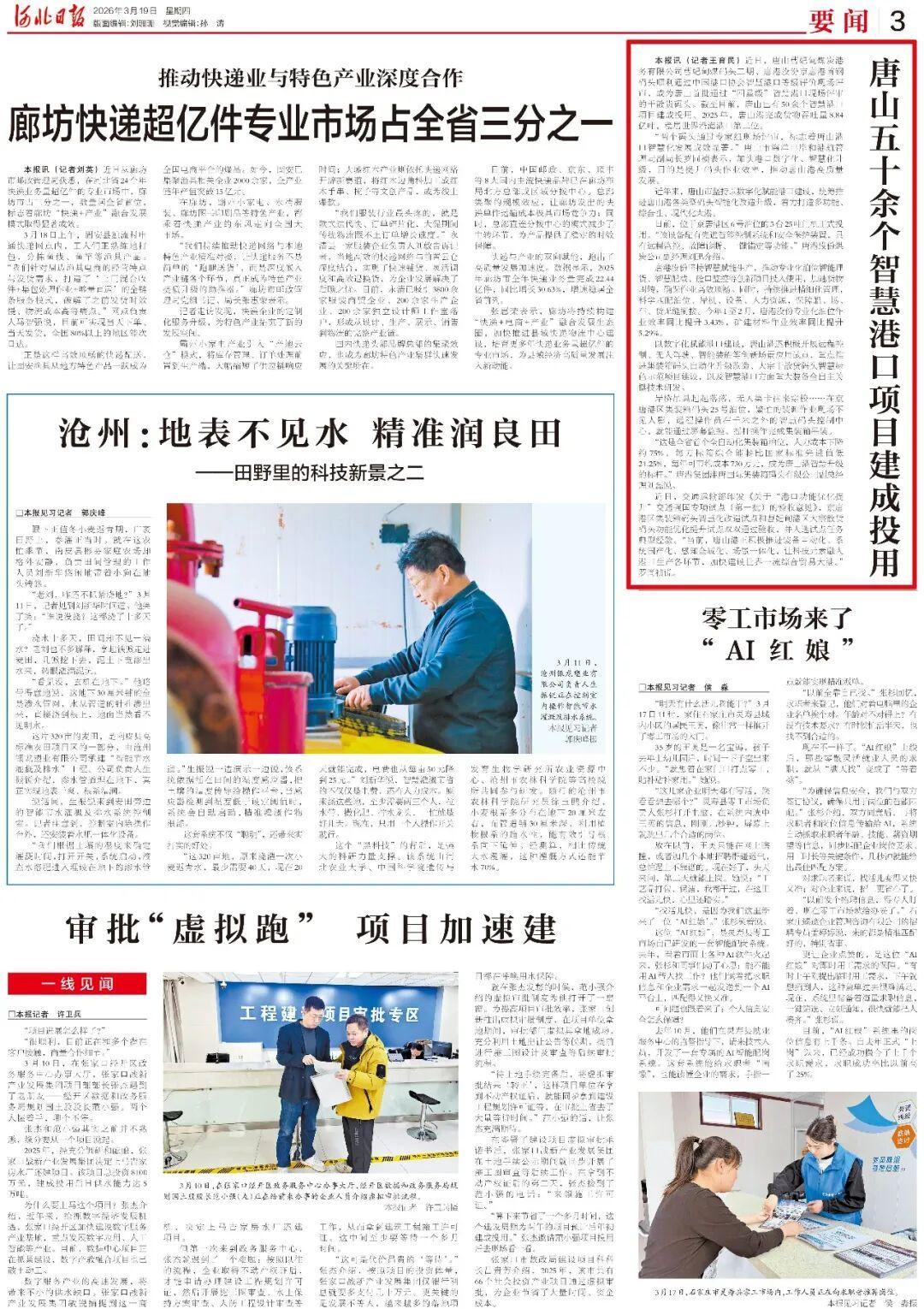 河北日报消息(记者 王育民)近日,唐山曹妃甸煤炭港务有限公司曹妃甸煤码头二期、唐港股份京唐港首钢码头顺利通过中国港口协会智慧港口等级评价现场评审,成为唐山首批通过“四星级”智慧港口现场评审的干散货码头。截至目前,唐山已有50余个智慧港口项目建成投用。2025年,唐山港完成货物吞吐量8.84亿吨,稳居世界沿海港口第二位。