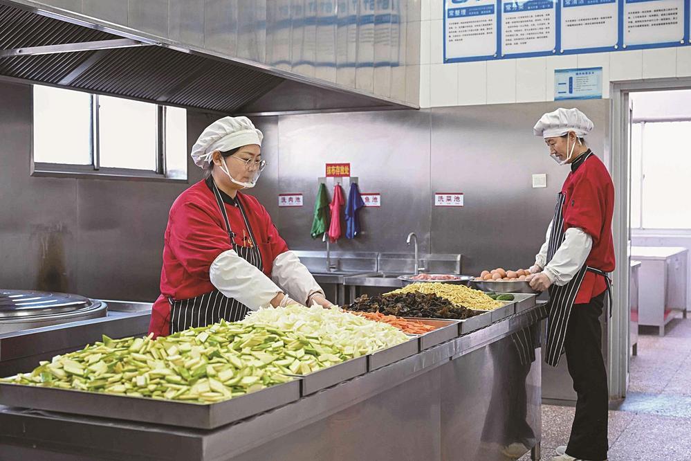 图为工作人员正在备菜。记者 徐慧 摄