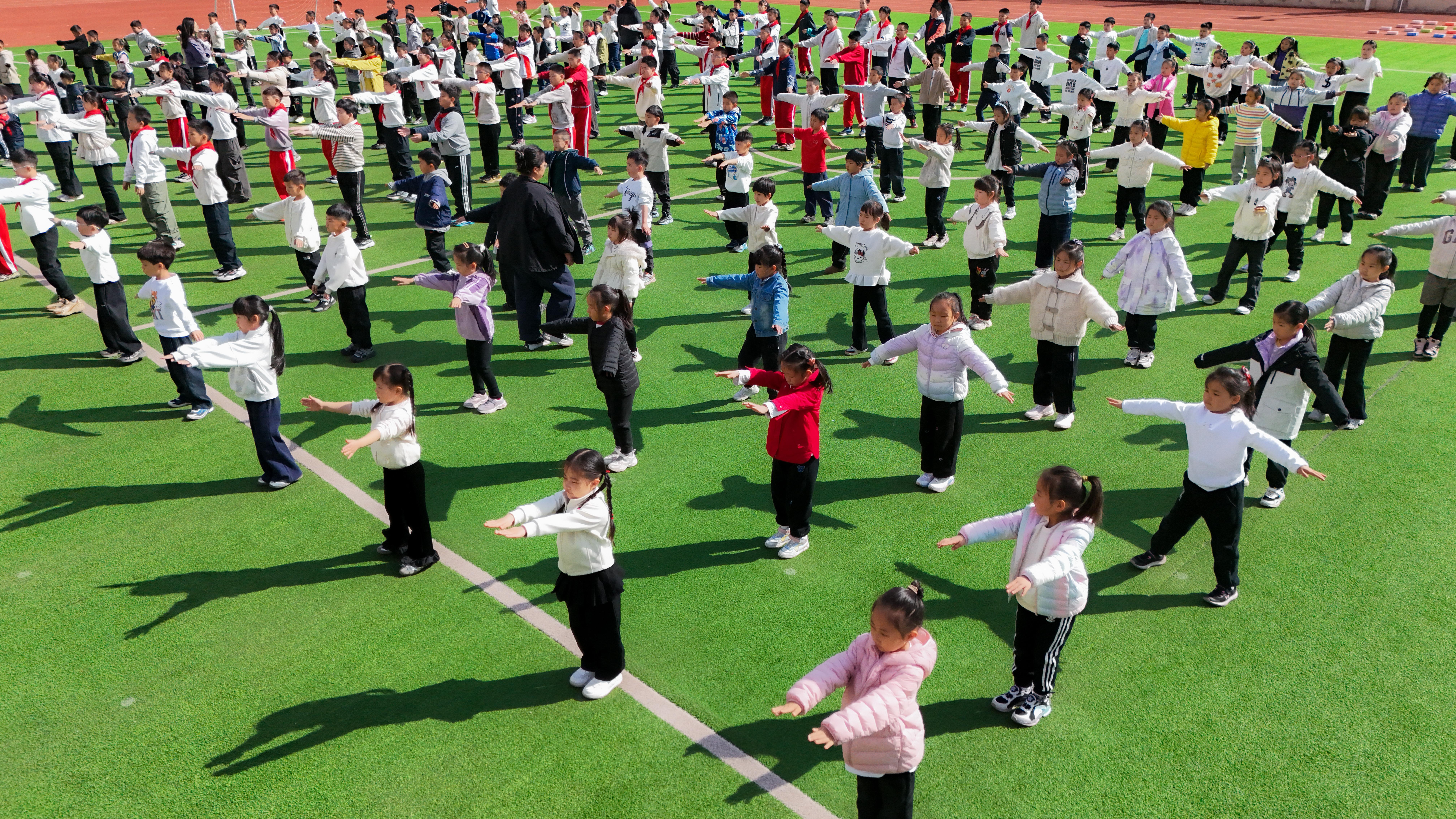 光明实验小学教育集团万科校区发挥体育教学特色,全面推行体育大课间活动,创新构建“红色教育+体育+传统文化”融合模式,实现全校学生全员参与、全域覆盖、全情投入,让体育精神在校园落地生根。