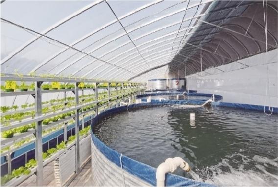 图为古冶区润跃淡水鲈水产养殖农民专业合作社的“鱼菜共生”大棚。 蔡皓 摄