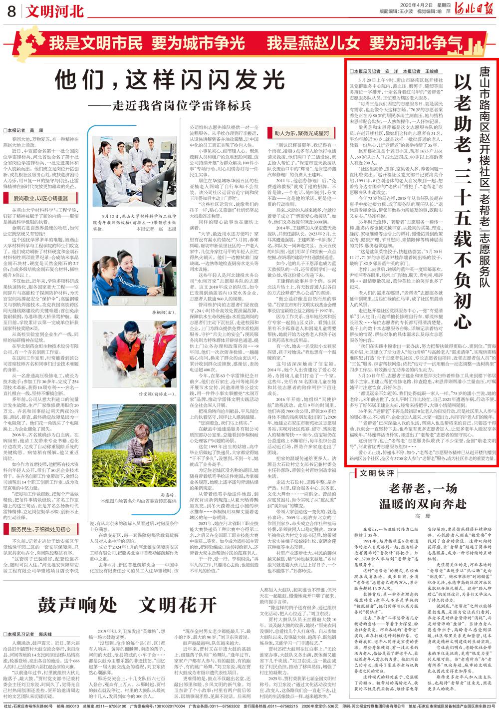 爱心无止境,传递永不停。如今,“老帮老”志愿服务精神已从赵开楼传播到路南区各个社区,全区有3700余人参与“老帮老”服务,成为社区养老的重要力量。