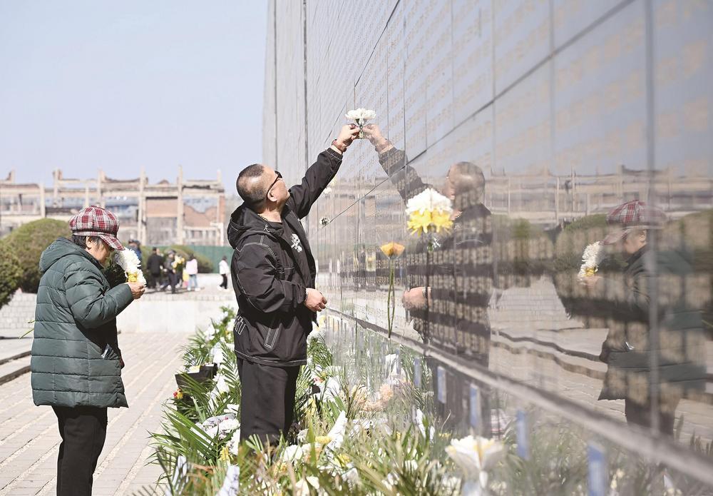 4月4日,民众在唐山大地震罹难者纪念墙前,驻足凝望、或轻触姓名、或躬身献花,全程安静肃穆,用最朴素的行动,践行了“文明祭扫、平安清明”的理念。