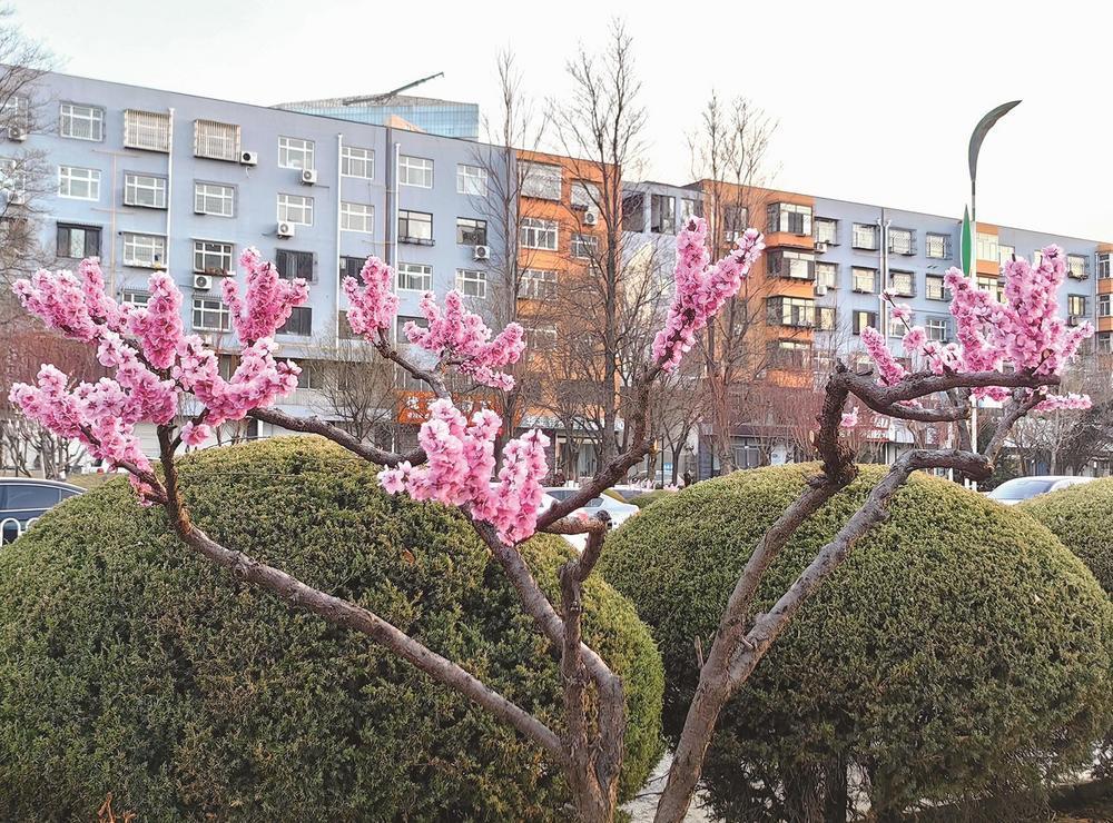 龙华东道栽植的重瓣榆叶梅。记者 杨文进 摄
