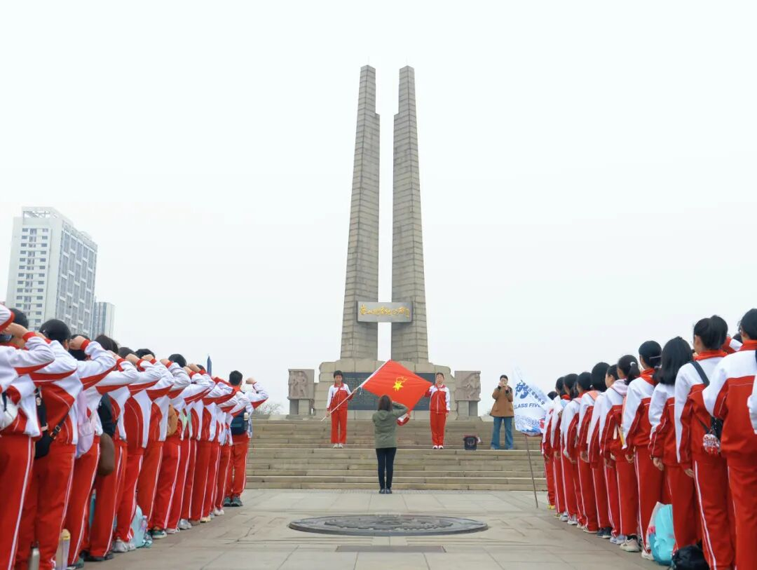 在唐山抗震纪念碑广场,全体师生身着整齐服装,列队肃立,现场氛围庄严肃穆。大家集体默哀,深切缅怀唐山大地震中不幸罹难的同胞,随后向在抗震救灾中舍生忘死、冲锋在前的英雄先辈深深鞠躬,以最庄重的仪式,寄托无尽哀思与崇高敬意。
