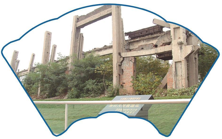 此处遗址为大型厂房车间建筑物震害典例,可供建筑学、土木工程学、材料力学、地震地质学教学和科研。