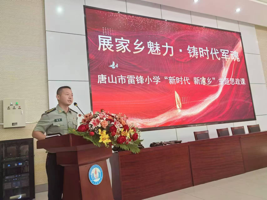 杨文浩在唐山市雷锋小学上“新时代 新家乡”主题思想课。