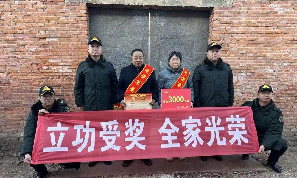 杨文浩带领玉田县退役军人志愿服务队为立功受奖家庭送喜报。