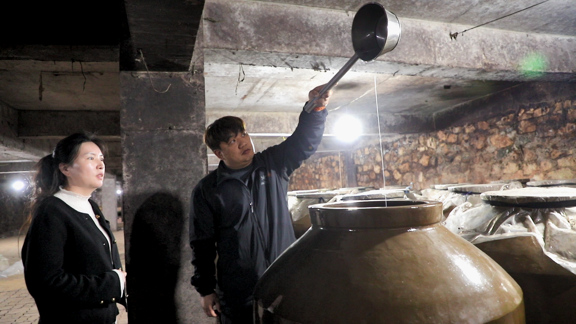 走进酿造车间,老窖池散发着浓郁醇厚的酒香,窖藏老酒澄澈见底,苗金喜讲解酒厂精选多种优质原料,从制曲、发酵、蒸馏到成品检验,全产业链自主把控,各道工序都力求精益求精。站在窖池旁,苗金喜目光温柔而郑重,这是父亲坚守的匠心,也成了他接力传承的根基。