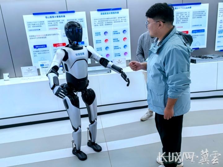华安百唐研发的具身智能机器人小智与记者互动。长城网·冀云客户端记者 吴新光 摄