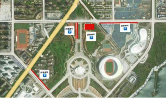 路线(红线):世园广场停车场指定地点→艺文道→学院南路→仁和道→妇幼医院北停车场