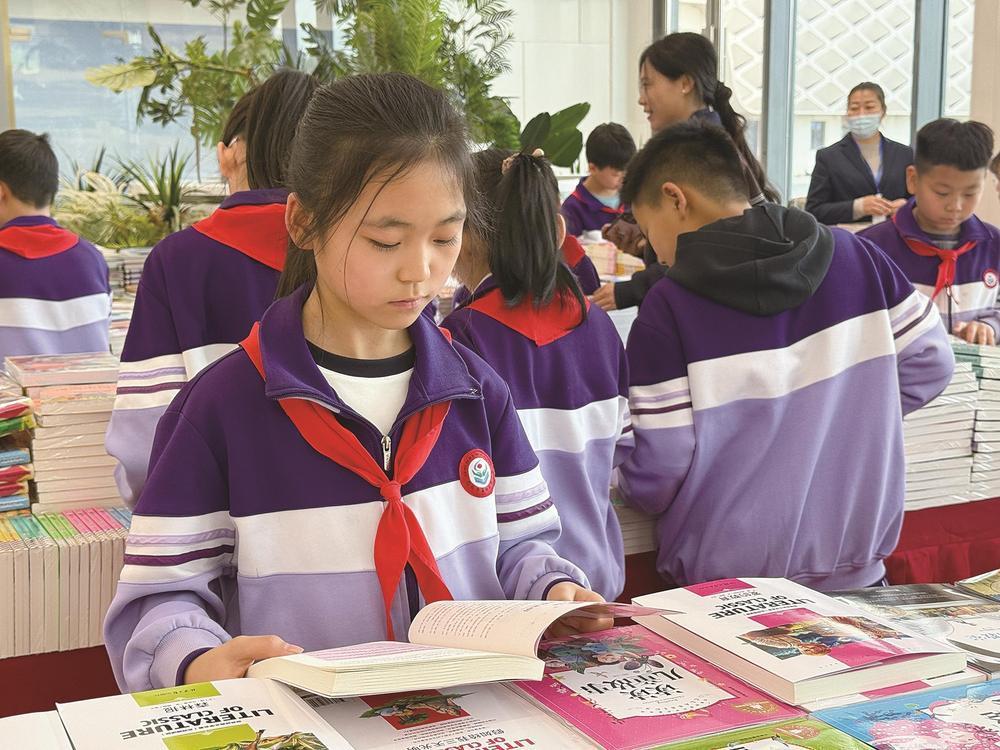 图为遵化小学生正在图书展上精心挑选图书。张瑶 摄