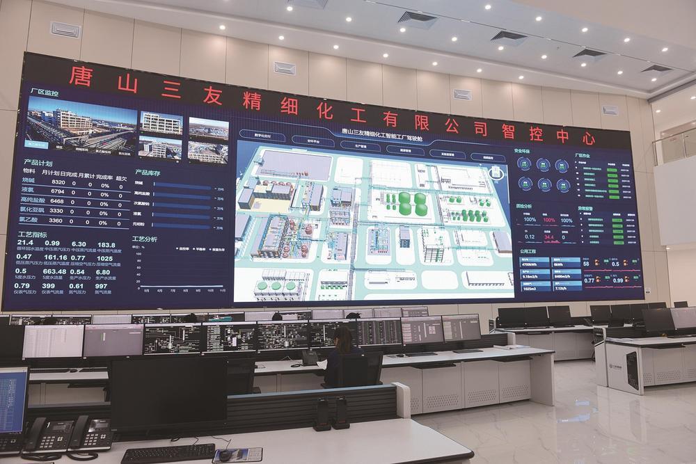 在三友精细化工公司智控中心,烧碱、液氮等产品计划和各项工艺指标在显示大屏上可以一目了然。 李勇 摄