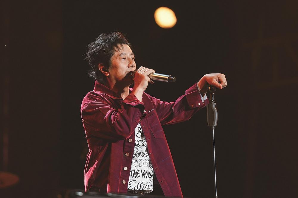 图为在唐山南湖音乐节演出现场,著名歌手郑钧正在深情献唱。杨欢 郭倩 摄