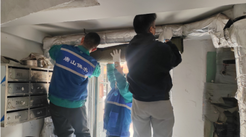 唐山市自来水公司高效完成防冻门帘收卷