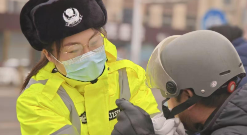 3月8日,丰南区交管大队女民辅警坚守岗位
